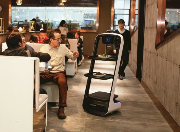 自动驾驶传菜机器人为顾客送上美食